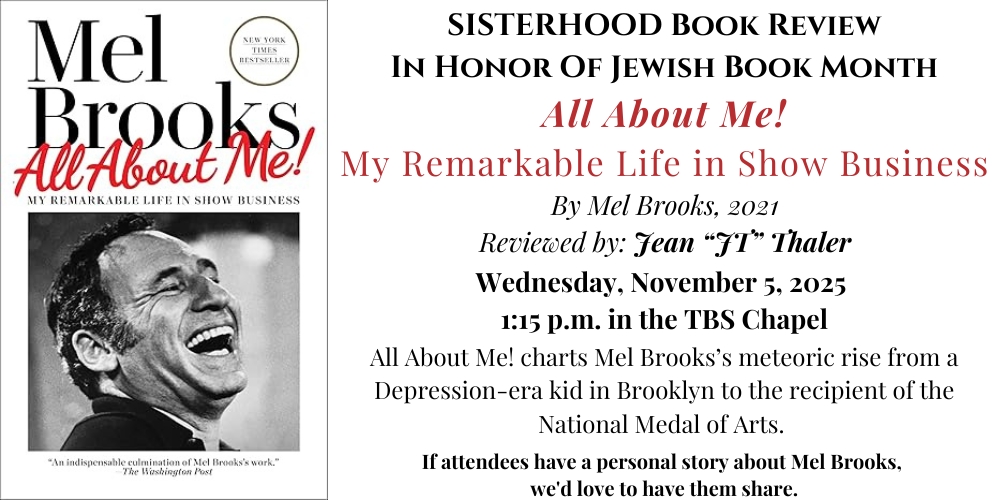 Book Review sponsored by Sisterhood in Honor of Jewish Book Month