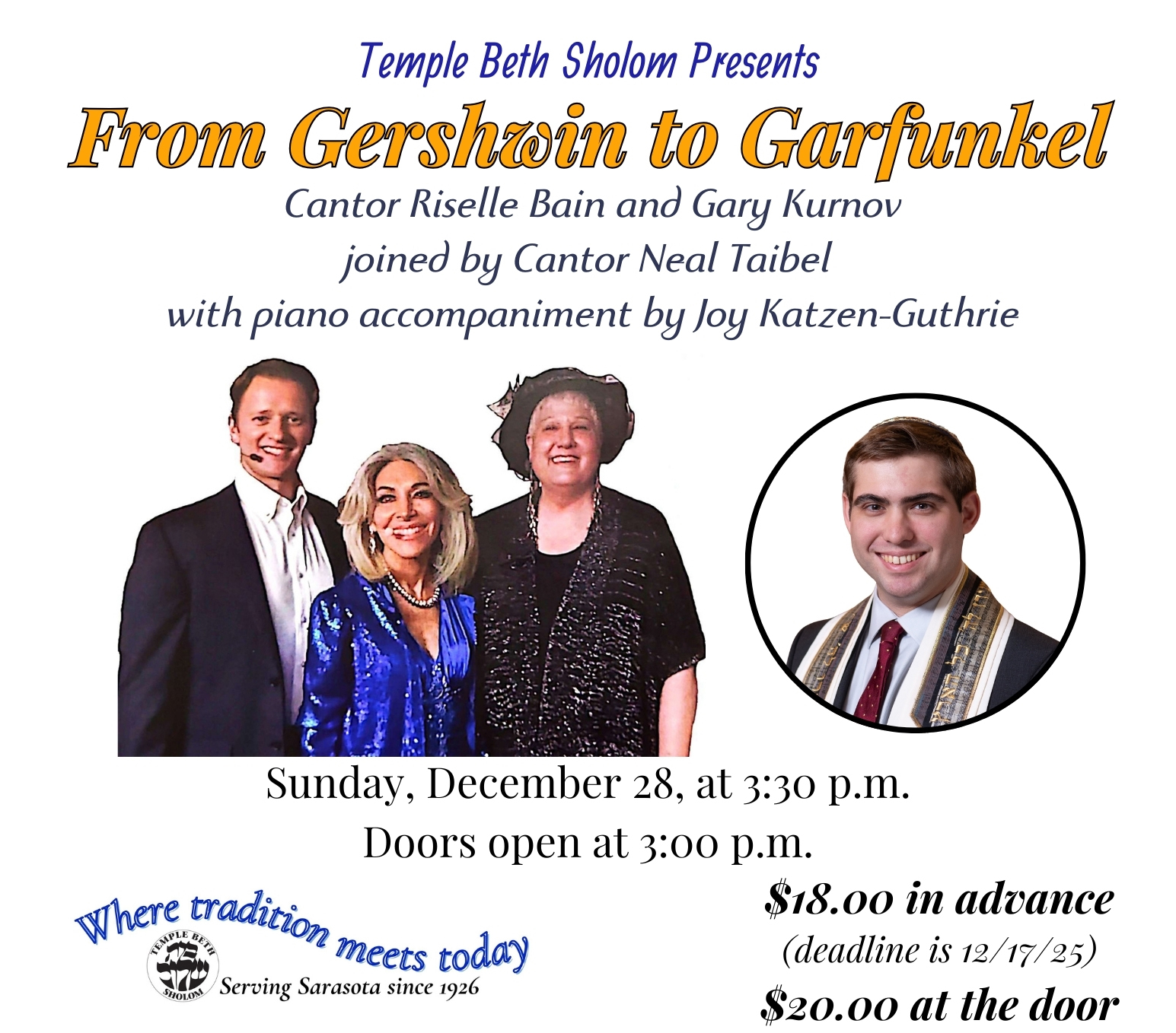 Sunday, December 28 at 3:30 pm at Temple Beth Sholom